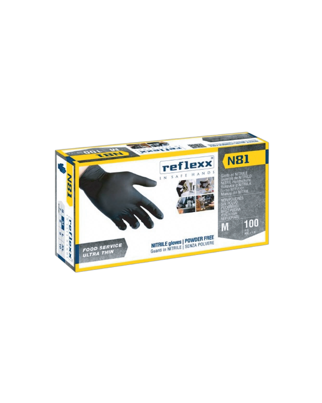 Materiale: nitrile; Peso: 3,2 gr +/- 0,4 (M); Colore: nero; Superficie: microruvida; Confezione:100pz